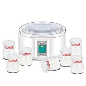 ★Includes a yogurt maker and 7 glass jars with white lids.