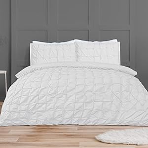 Home DecorSleepdown Duvet Cover Set – White – Rouched Pleats Geometric Pintuck – Ruched Quilt Cover Easy Care Bed Linen Soft Cosy…