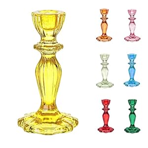 Home DecorTalking Tables – Yellow Glass Candlestick Holder, Decorative Taper Candle Stand, Elegant Dinner Party Decorations…