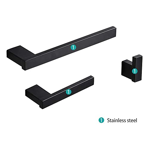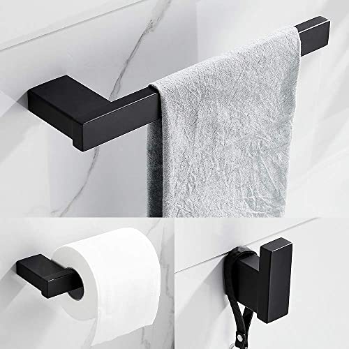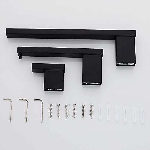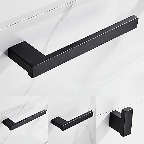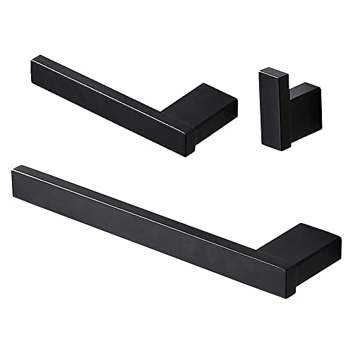 3 Piece Bathroom Hardware Set Matt Black Finish Stainless Steel Wall Mounted, Towel Bars, Toilet Paper Holder, Robe…
