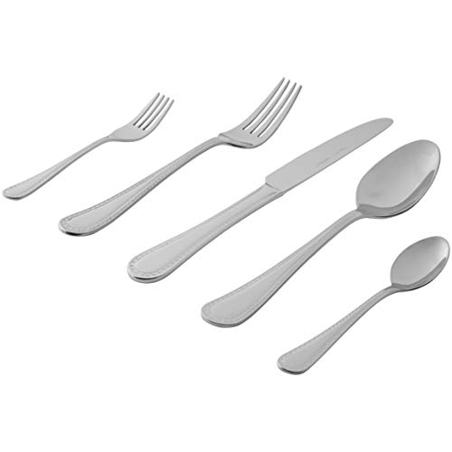 Amazon Basics 20-Piece Stainless Steel Flatware Set with Pearled Edge, Service for 4