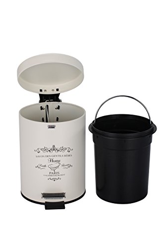 Axentia Cosmetic Bin “Paris”, Dustbin Stainless Steel as Bathroom Accessory, Waste Bin with 3 Litres Volume, Pedal-Bin For Bathroom, Approx. Diameter 17 x 24.5 cm, Antique White