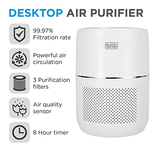 BLACK+DECKER BXAP62001GB Desktop Air Purifier with Air Quality Sensor, 8 Hour Timer, White