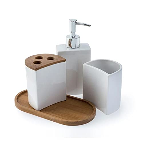Blue Canyon Bathroom Accessory Set, Bamboo, White, One Size