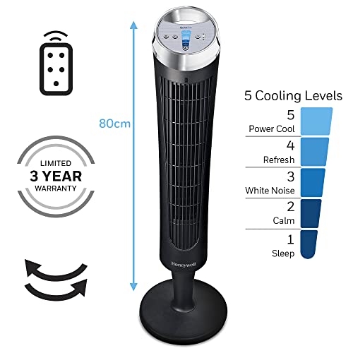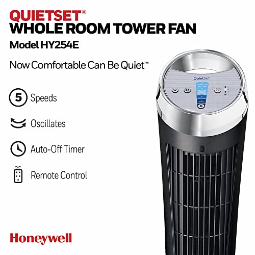 Honeywell QuietSet Tower Fan (5 Speed Settings, Oscillating 75°, Timer Function, Remote Control) HY254