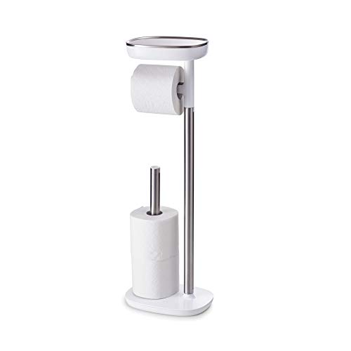 Joseph Joseph Bathroom EasyStore Free Standing Toilet Paper Roll Holder with small storage shelf, Stainless Steel