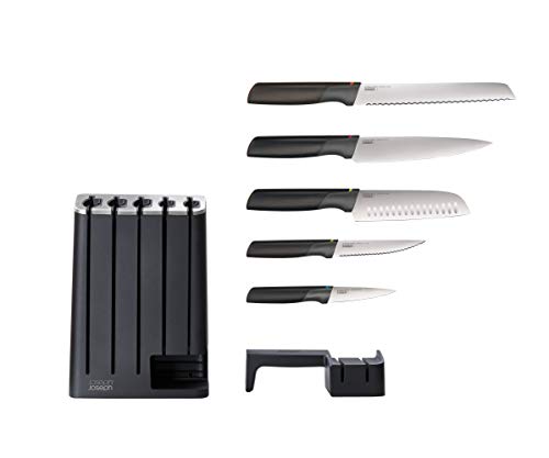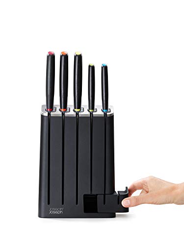 Joseph Joseph Elevate Knives SlimBlock Stainless Steel 5 Piece Kitchen Knife Block Set with ceramic sharpener – Black
