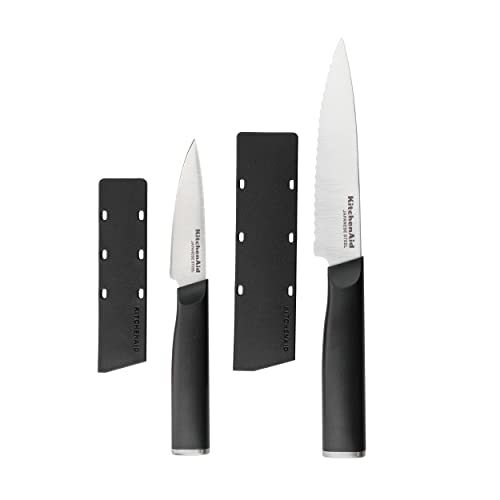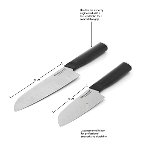 KitchenAid Classic Santoku Japanese Knife Set, Sharp High-Carbon Japanese Steel Knife, Black, Blade Covers Included, 2…