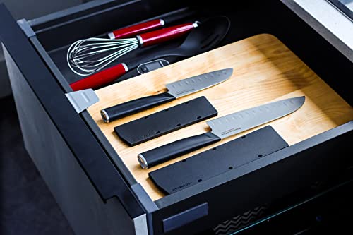 ERGONOMIC HANDLE: These KitchenAid knives feature eastern-style ergonomic handles that provide optimal control for everyday use. These handles are expertly engineered with a textured finish for a comfortable grip and accented with a chrome endcap