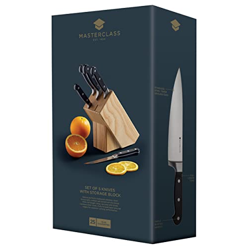 MasterClass Halo Kitchen Knife Set with Block, 5-Piece, Carbon Steel