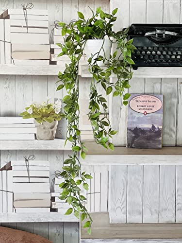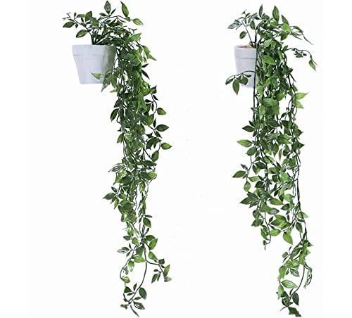 Hanging Artificial Plants Set of 2 Trailing Fake White Potted for Room Decor Home Kitchen Garden Office Shelf Wall Décor Pot Decoration Indoor and Outdoor, 22.3*11*18cm,
