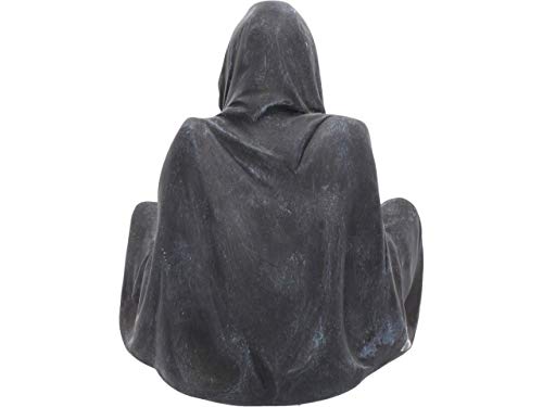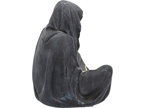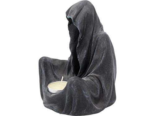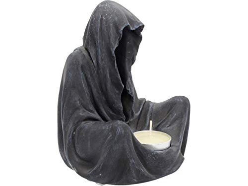Sat on the ground, This Reaper rests silently. His Black cloak drapes down, hiding his skeletal face, giving this figure a sinister Aura. At the base of his cloak, a small tea light candle can be placed. Cast in the finest resin before being hand-painted, this piece would make a welcome addition to any Gothic home.