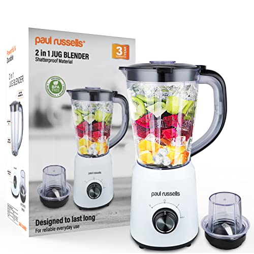 paul russells Electric Blender Smoothie Milkshake Maker, Jug 500W Stainless Steel Blades, 2 Speed Control with Pulse…