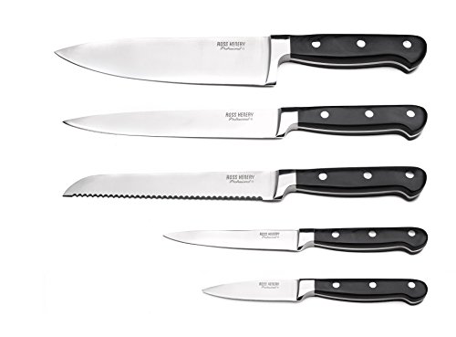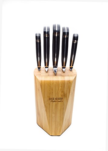 Ross Henery Professional 5 Piece Stainless Steel Full Tang Kitchen Knife Set in Super Stylish Solid Bamboo Wooden Block
