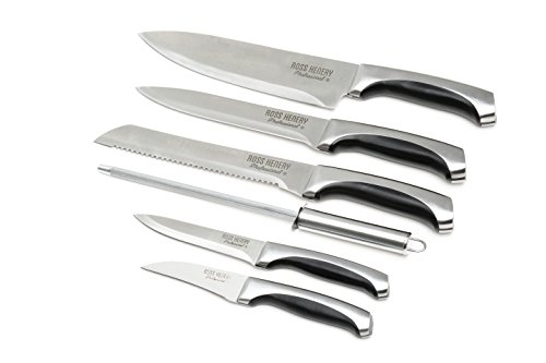 Ross Henery Professional, 6 Piece Premium, High Grade 5Cr15MoV Stainless Steel, Kitchen Knife Set in Oak Wood Block