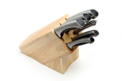 This fantastic knife set is a perfect addition to any modern and stylish kitchen, the block is made from 100% Oak wood. The knife handles are shaped and designed to offer a superior grip and the blades are high grade 5Cr15MoV stainless steel.