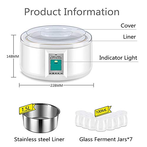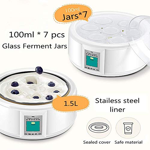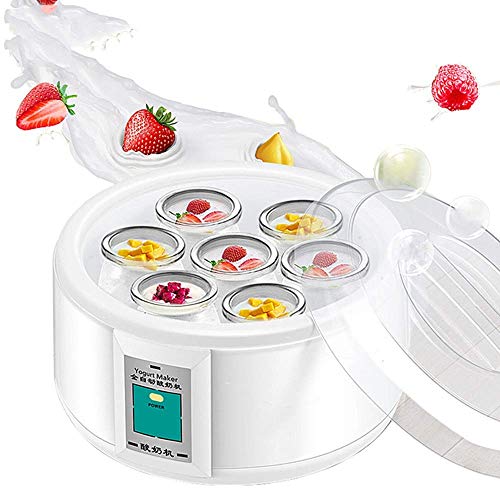 ★Includes a yogurt maker and 7 glass jars with white lids.