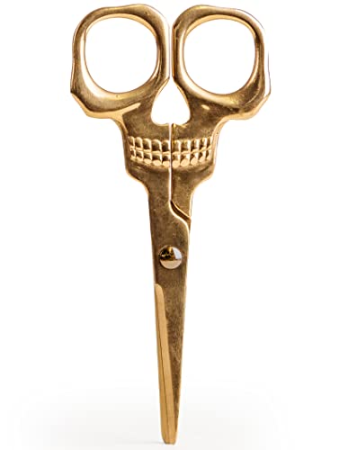Boo! Scare away any office scissor thieves with a pair of multifunctional brass finish office scissors / sewing scissors. Heavy duty enough to slash through any boring paperwork or stationery tape. Scissors that put the ‘fun’ in funeral. Your knitting & dressmaking never seemed so fun, these sewing scissors for fabric allows for precise textile trimming while adding a deadly decorative twist on classic sewing accessories. Alternatively, use as a kitchen scissor or in the garden as herb scissors to slice through tasty herbs for cooking and more. Stainless steel scissors for kitchen use that are easily washable to remove dirt and grime when preparing food & drinks. If you need scrapbook accessories & scrapbooking supplies, look no further. Ideal for DIY crafting and art lovers who desire a dark pair of snippers. Even try them out as beard scissors – snip through pesky fly away hairs and trim your ‘tache with style. Skull themed decorative home accessories to give your house a spooky furnish while remaining practical. Use for a Halloween party to frighten guests or as simple home decor accessories to liven up your home office desk. Skull gifts for women or men who love gothic decor & gothic home accessories or novelty scissors.