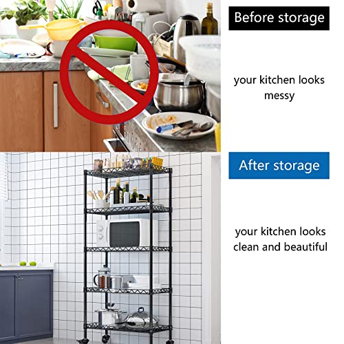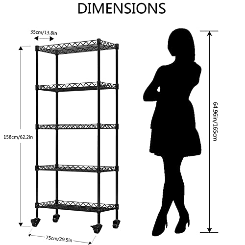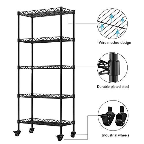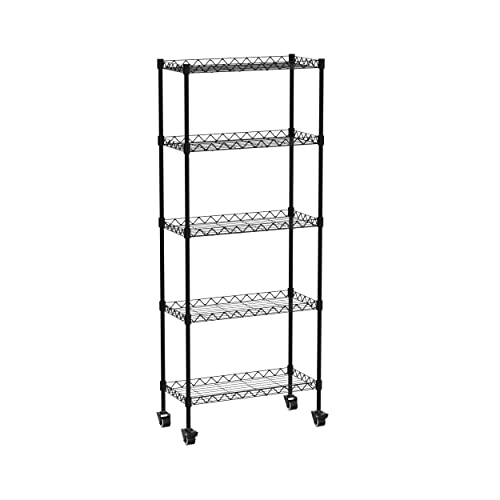 5-Shelf Shelving Storage Unit on Wheel Casters,Metal Organizer Wire Rack for Home Office Kitchen Bathroom Organization,Black(30Lx14Wx62.5H)