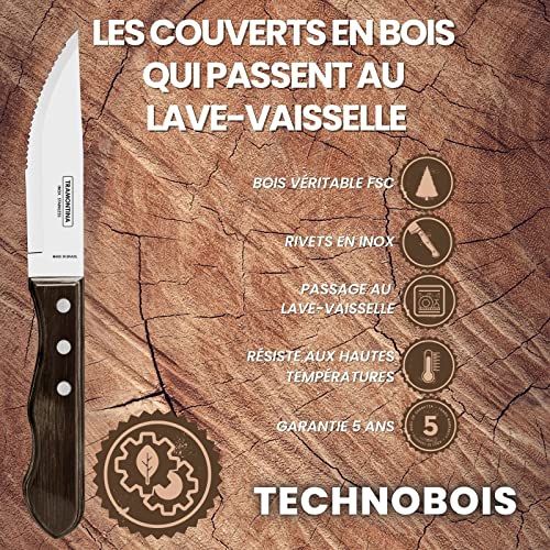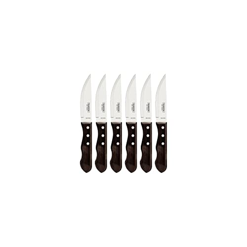 Tramontina 5” Jumbo Steak Knives, Sharp Knife with Wooden Handle, ‎Camping, Kitchen, Rustic, Dishwasher Safe (6-Piece)