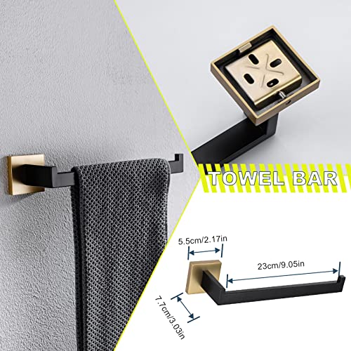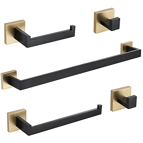 TURS 5-Piece Bathroom Hardware Set Matte Black and Brushed Gold Towel Bar Holder Set Hand Towel Holder Toilet Paper…